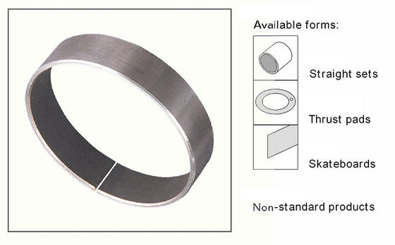 Sarılan Astarlı (bakım gerektirmeyen), kendinden yağlamalı düz rulmanlar, baskı pulu ve şerit, sinterlenmiş bronz katmanla doldurulmuş paslanmaz çelik kabuk